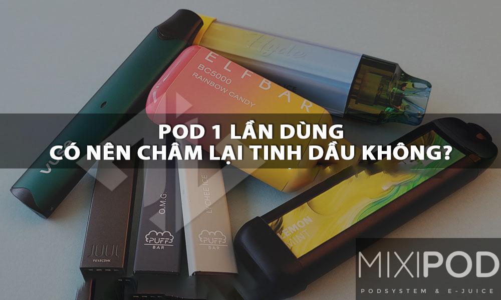 Chất lượng tinh dầu: Khi tinh dầu trong pod 1 lần đã hết, cuộn dây và bông bên trong cũng đã bị sử dụng và có thể bị hỏng. Việc châm lại tinh dầu vào pod đã hết sẽ không đảm bảo được chất lượng và hương vị của tinh dầu.