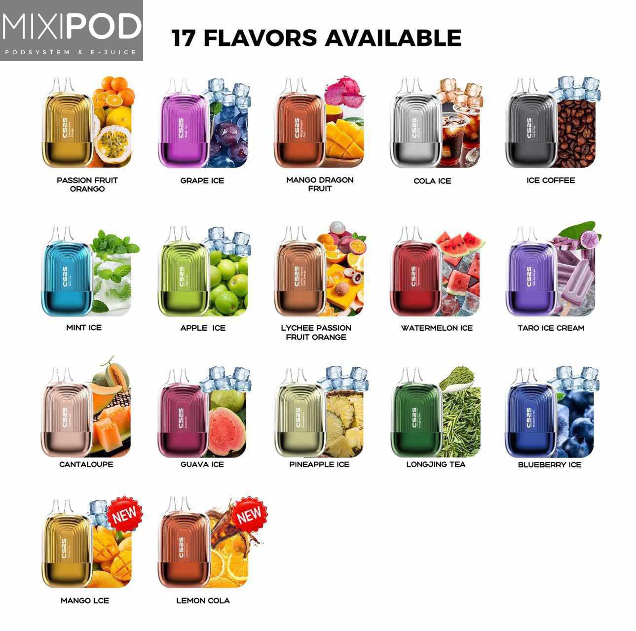 CS25 CS10000 Hơi không chỉ nổi bật với hiệu suất và lợi ích mà còn là nguồn cảm hứng cho những ai yêu thích khám phá thế giới hương vị. Với 10 loại hương vị khác nhau, từ trái cây tươi ngon như Vải Chanh Dây Cam, Dưa Hấu Lạnh, Xoài Thanh Long, đến những hương vị đậm đà như Cà Phê Lạnh và Kem Khoai Môn, sản phẩm này mang đến sự đa dạng và thú vị cho mọi tâm trạng và sở thích.