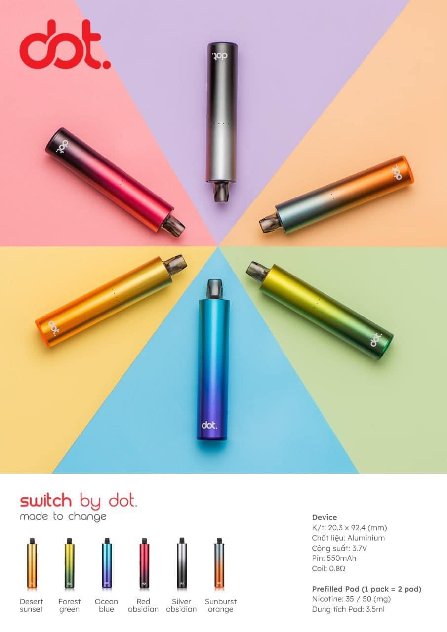 Dot Switch được thiết kế để cạnh tranh với các sản phẩm closed pod giá rẻ như Gotek S và Gotek X của Aspire, vốn đang thống lĩnh thị trường. Với thiết kế trẻ trung, năng động và khả năng tối ưu hóa trải nghiệm người dùng, Dot Switch thực sự nổi bật và khác biệt.