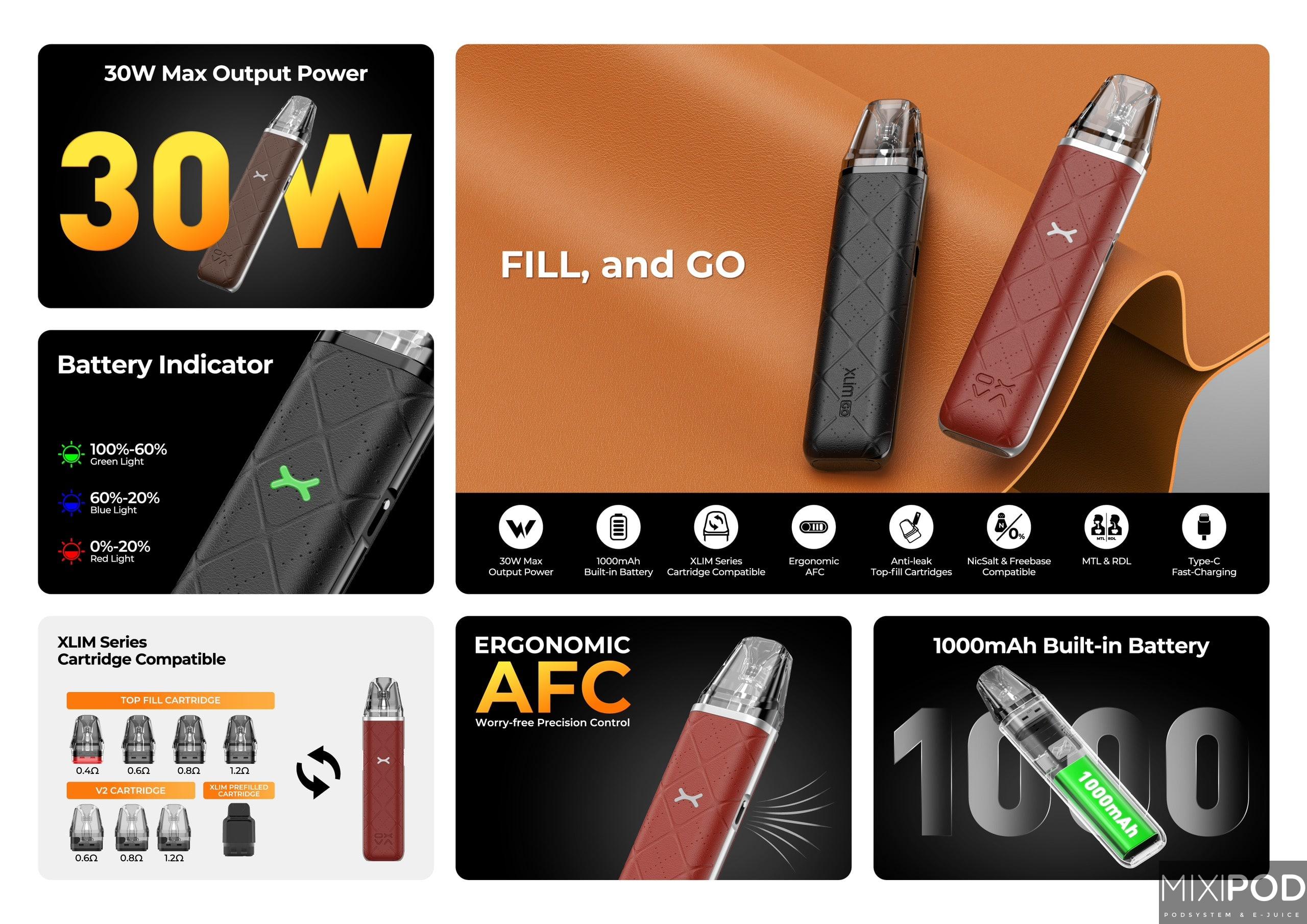 Năm 2024, thương hiệu OXVA lại làm náo động thị trường Pod System với siêu phẩm mới nhất mang tên Xlim Go. Được biết sự ra đời của Xlim Go là sự kết duyên tinh tế giữa 2 người anh tiền nhiệm là Xlim Pro và Xlim SE. Với các thông số kỹ thuật đình đám 30W công suất và 1000mAh cho dung lượng pin, XLIM GO hứa hẹn mang lại trải nghiệm vaping đỉnh cao mượt mà cho anh em. Ngay bây giờ hãy cùng chúng tôi khám phá những thú vị của dòng pod mới này nhé