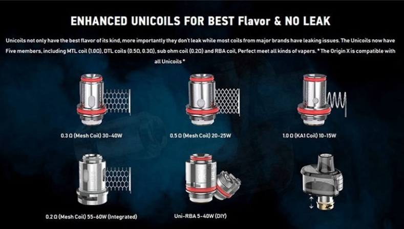 - OXVA Unicoil 0.2ohm Mesh Coil 55-60W – Chỉ được khuyến nghị sử dụng cho Origin X 60w