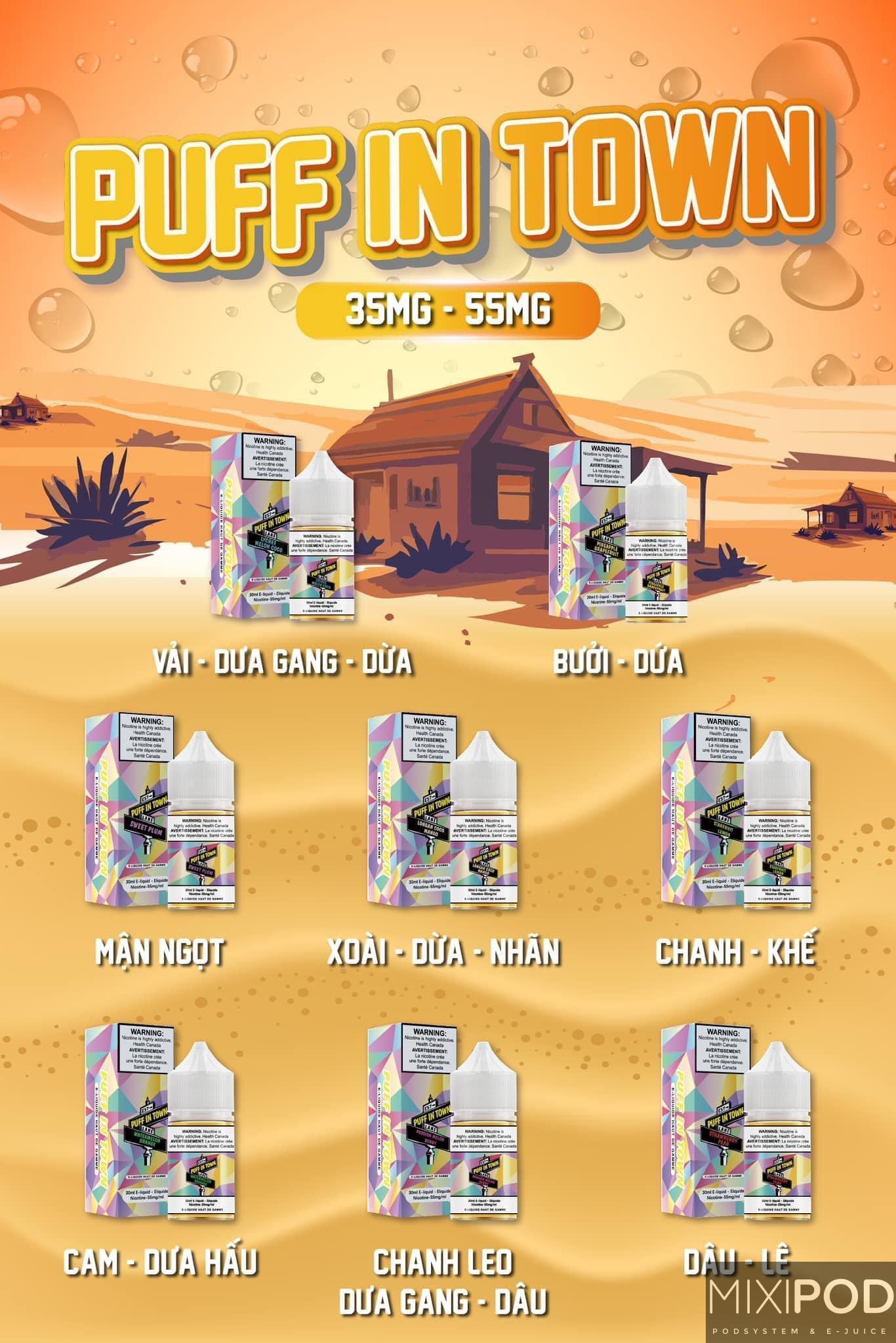 Puff in Town (PiT) là dòng Juice mới đang được ưa chuộng trên thị trường, đặc biệt với hai lựa chọn nồng độ nicotine là 35mg và 55mg. Sản phẩm này nổi bật với hương vị đa dạng và phong phú, mang đến trải nghiệm vaping tuyệt vời cho người dùng. PiT được sản xuất theo quy trình nghiêm ngặt, đảm bảo chất lượng và an toàn.