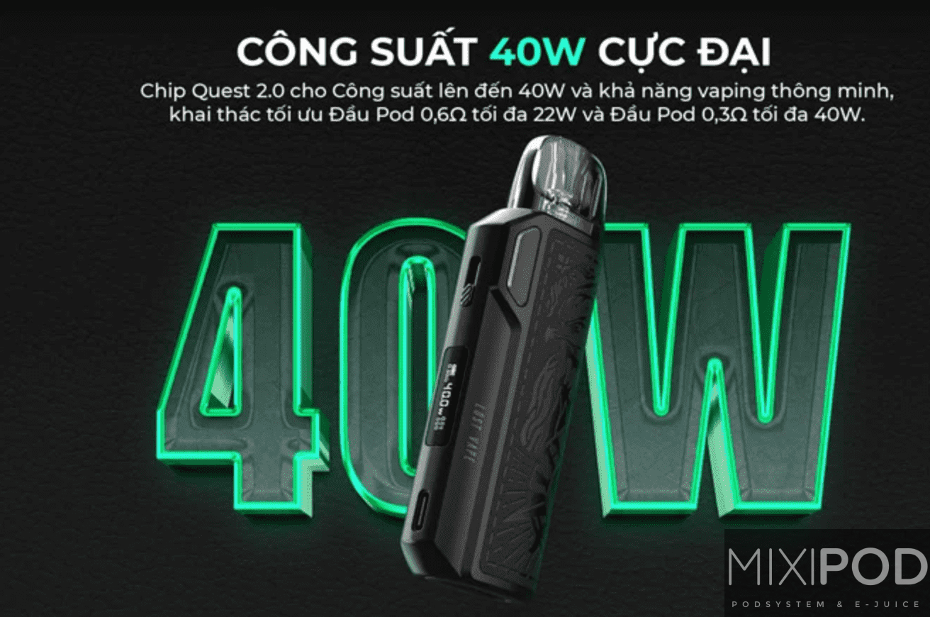 Được nhà sản xuất trang bị chip Quest tiên tiến, kết hợp công suất đầu ra mạnh mẽ từ 5 – 40W, thiết kế lỗ gió linh hoạt, anh em đồng khói có thể chủ động trải nghiệm Vaping đa dạng từ MTL đến DTLcvoo cùng sảng khoái, ấn tượng