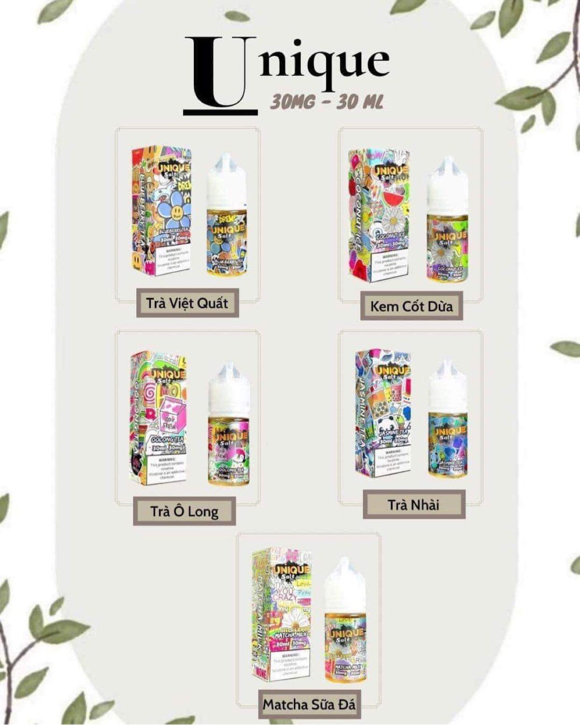 List hương vị Unique Juice Salt 30/50MG (13 vị)